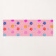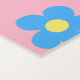 Colourful Flower Power pattern on pink background. Playful floral design.