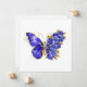 Jewellery, blue, sapphire, sparkling flower butterfly with wing decorated with blue, precious flowers with gold leaves on white background.