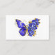 Jewellery, blue, sapphire, sparkling flower butterfly with wing decorated with blue, precious flowers with gold leaves on white background.