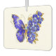 Jewelry, blue, sapphire, sparkling flower butterfly with wing decorated with blue, precious flowers with gold leaves on white background.
