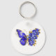 Jewellery, blue, sapphire, sparkling flower butterfly with wing decorated with blue, precious flowers with gold leaves on white background.