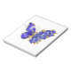 Jewelry, blue, sapphire, sparkling flower butterfly with wing decorated with blue, precious flowers with gold leaves on white background.