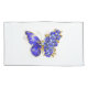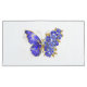 Jewellery, blue, sapphire, sparkling flower butterfly with wing decorated with blue, precious flowers with gold leaves on white background.