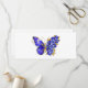 Jewellery, blue, sapphire, sparkling flower butterfly with wing decorated with blue, precious flowers with gold leaves on white background.