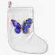 Jewellery, blue, sapphire, sparkling flower butterfly with wing decorated with blue, precious flowers with gold leaves on white background.