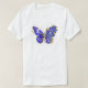 Jewelry, blue, sapphire, sparkling flower butterfly with wing decorated with blue, precious flowers with gold leaves on white background.