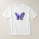 Jewellery, blue, sapphire, sparkling flower butterfly with wing decorated with blue, precious flowers with gold leaves on white background.