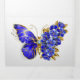 Jewellery, blue, sapphire, sparkling flower butterfly with wing decorated with blue, precious flowers with gold leaves on white background.