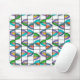 This mouse pad has a Boho design of flowers inside ovals that have been split into quarters and placed on a grid.