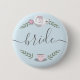 The background of the button is a serene shade of blue, creating a calm and elegant backdrop for the design. If blue doesn't suit the theme or the bride's preference, the 'customise further' tool allows for easy alteration of the background colour, ensuring the button perfectly matches the bridal shower's aesthetic.