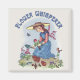 Adorable retouched vintage garden girl in straw bonnet. She is planting flowers and has clay pots, garden bugs and butterfly nearby. Text says Flower Whisperer and is a delightful gift idea for a lady gardener.