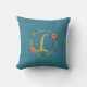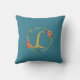 Flower Wreath Gold Monogram Initial L Cushion Teal