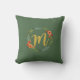 floral monogrammed cushion with a flower wreath and a cute script handwritten initial.