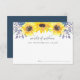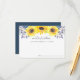 Country chic floral advice cards let bridal shower guests share their favourite words of wisdom for the bride to be. Cards feature a top border of yellow watercolor sunflowers and tiny navy blue buds. "Words of wisdom for the future Mrs. [Name]" appears in modern hand lettered calligraphy script.