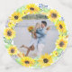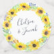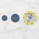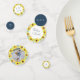 Dress up your engagement party, rehearsal dinner or wedding reception with custom confetti. Designed to match our rustic country floral Flowerfields collection, confetti features yellow sunflower wreaths with a variety of messages, including your names, wedding date, initial, "LOVE" and a small heart. Personalise with a favourite photo as well, ringed by a wreath of sunflowers and navy blue wildflower buds.