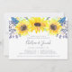 Country chic floral rehearsal dinner invitation features a top border of watercolor sunflowers, tiny navy blue buds, and green foliage. Personalise with your ceremony rehearsal and dinner or celebration details in modern hand lettered script and traditional serif lettering. Rustic rehearsal dinner invitations reverse to rich harbour blue.