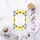 Our Flowerfields wedding invitation surrounds your wedding day details with a geometric gold foil frame flanked by yellow watercolor sunflowers and blue and purple buds. A beautiful choice in cheerful, vibrant hues for summer or country weddings.