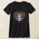 Womens' skull with flower hair on a heart with flourishes. Colour, vintage distressed texture, available on all shirts, all sizes.