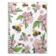 Flowering apple orchard with bees watercolor drawi notebook