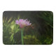 The original photograph by ZoeSPEAK on this large Bath Mat is a closeup of a chives flower blooming against a soft focus background of saw palmetto. Sunlight is just entering the garden, highlighting the spring green of the palmetto and the lavender of the flower.