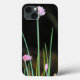 The softly dramatic image on this iPhone 13 Case is an original photograph by ZoeSPEAK of a flowering chives plant. Each pale lavender flower sits atop its light bluish green tubular stem. The dark, evening background of the photo shows off the beauty of this delicious herb.