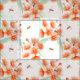 Orange flowers on a flowering gum or gumtree in Victoria Australia Corymbia ficifolia. Pretty orange flower heads being pollinated by honey bees with green leaves. © Original watercolor sketched sylized painting by Sarah Trett. www.sarahtrett.com for www.mylittleeden.com