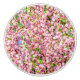 Flowering Plum. Blossoms flowering plum shrubs also known as flowering almond. Pink festive flowers against blue and green background. Spring theme. This is a plum tree, this is an almond tree, this is a cherry tree. This tree is everything. It originates from China and is scientifically called Louiseania triloba, Amygdalus triloba and Prunus triloba. It is considered to be a shrubby cherry, some people call it sakura. Very elegant and decorative plant. Another set of square aspect ratio products and souvenirs.