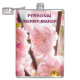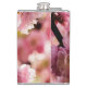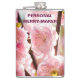 Flowering Plum - Pink Paradize. Closeup view of flowers between the branches of a flowering plum tree in full bloom. The tree or shrub is also known as flowering almond. Pink festive flowers. Spring theme. This is a plum tree, this is an almond tree, this is a cherry tree. This tree is everything. It originates from China and is scientifically called Louiseania triloba, Amygdalus triloba and Prunus triloba. It is considered to be a shrubby cherry, some people call it sakura. Very elegant and decorative plant. Funny customisable hip flask. You can change or delete two lines of text Personal Merry-Maker.