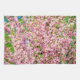 Flowering Plum. Blossoms flowering plum shrubs also known as flowering almond. Pink festive flowers against blue and green background. Spring theme. This is a plum tree, this is an almond tree, this is a cherry tree. This tree is everything. It originates from China and is scientifically called Louiseania triloba, Amygdalus triloba and Prunus triloba. It is considered to be a shrubby cherry, some people call it sakura. Very elegant and decorative plant. Horizontal or landscape orientated products and souvenirs.