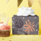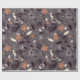 Flowers, acorns, pine cones, stars on grey wrapping paper