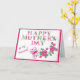 Mummy will love receiving this cute card for Mother's Day! The front of the card has a bright pink, green, and white flower and butterfly image. At the top is pretty green and pink floral lettering that says Happy Mother's Day. Custom text in darker pink says "to my Mummy!" Everything is placed on a white background and is framed in matching pink. The inside text can also be customised to say anything you'd like.
