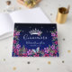 Lovely faux shinny stars on the top border. Elegant and trendy design with fancy script typography. All text is adjustable and easy to change for your own party needs. Great elegant Quinceañera design. Available in different colours. Beautiful princess tiara with flower arrangement. blue Butterfly with on bottom floral border. Different background colours available.