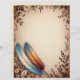 Cream-coloured flowers and coral buds, with two large quill feathers in blue, white, and bronze on a tan background makes a beautiful and striking letterhead paper. Very boho, and perfect for correspondance, a newsletter, or invitation.