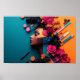 Beautiful poster featuring a dark-skinned woman surrounded by flowers and cosmetics, celebrating beauty and elegance. The vibrant design captures both grace and strength, making it a perfect addition to any home, office, or beauty lover’s space. Ideal for those who appreciate diverse representations of beauty. Available in various sizes and customisable options.