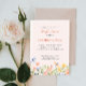 Watercolor wild flowers, leaves, dragonflies in soft watercolor palette of pink, blue yellow and green adorn this romantic and elegant Bridal Shower invitation.