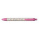 A pen with a lovely French themed pattern. Pretty flowers and an Eiffel tower and butterflies. Colours include pink, blue, peach and cream.