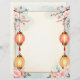 This Asian-inspired letterhead stationery has amber and honey-coloured lanterns down both sides, and pink cherry blossoms in the corners. A gold frame has plenty of space for your correspondence, a newsletter, or an invitation.