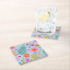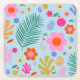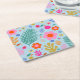 Flowers And Leaves 03 Blue And Pink Square Paper Coaster