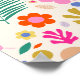 Abstract Retro Floral Print - Botanical Illustration - Flowers And Leaves – Pink, Orange, Green, Blue, Cream White.