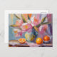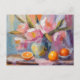 A captivating modern art painting in an impressionist style, featuring a still life of vibrant flowers and oranges, rendered with textured brushstrokes in muted pastel pink and orange tones. The gentle colours blend harmoniously, creating a soft and inviting atmosphere. The textured strokes bring depth and character to the composition, beautifully capturing the essence of the flowers and fruit in a fresh, contemporary way.