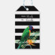 Exotic orange flowers and colourful parrot seamless pattern over white background. Customisable gift tag template