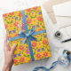 Flowers and Polka Dots on Yellow Wrapping Paper