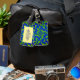 Make your luggage stand out on an airport carousel with unique tag designs! This colourful luggage tag features a wild abstract circular pattern of luminous greens and blues swirling around a central flower with kaleidoscopic movement. The outside edges have shades of purple and magenta. Customise the text on the reverse side with your personal information.