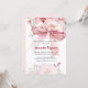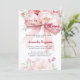 An elegant white background, decorated with a large pink bow and pink flowers. Personalise and add a name and party details.