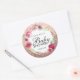 Flowers Baby Shower Pink Rose Gold Glitter Classic Round Sticker