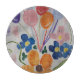 Among the best things about celebrations are all the colorful balloons and pretty flowers. In this charming original watercolor, there is a bunch of balloons in vivid pastel shades of red, pink, violet, orange and green with a gorgeous floral base of orange, blue and pink flowers with lush green leaves and vegetation.