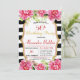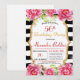 Stylish Birthday Party Invitation with black&white striped background, surrounded by flowers and golden frame in the centre makes it a perfect invitation complimenting an unforgettable evening spent with closest.