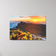 This amazing Getty Images photo features flowering plants on rocks on Pico de la Zarza peak under the burning sky at dawn, Fuerteventura, Canary Islands, Spain