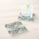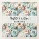 Flowers dusty green cream names wedding glass coaster