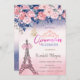 Flowers,Eiffel Tower Bow Butterfly Quinceanera Invitation